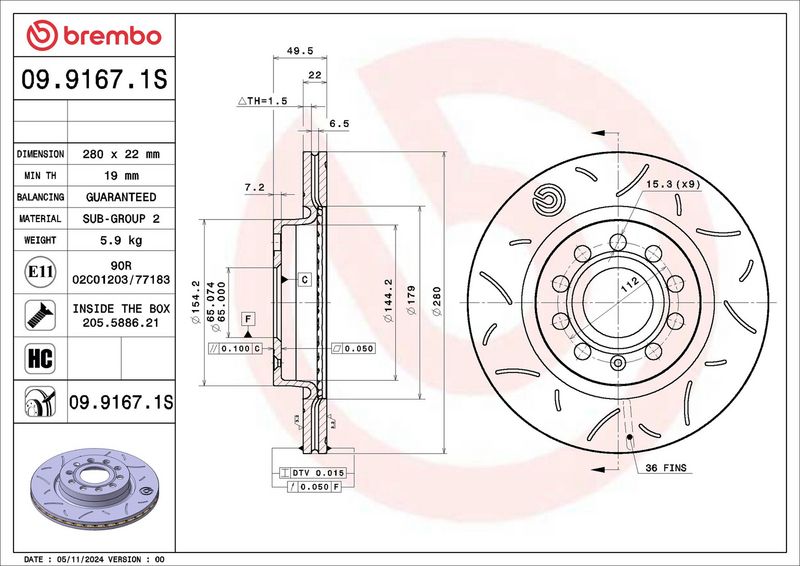 Тип тормозного диска : вентилируемый