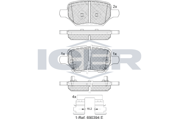 Количество тормозных колодок : 4