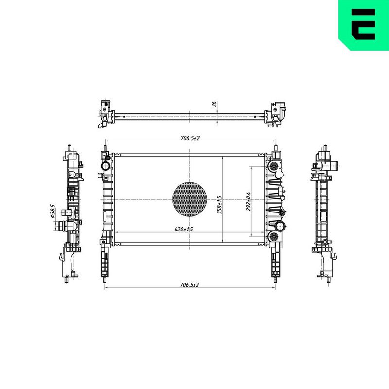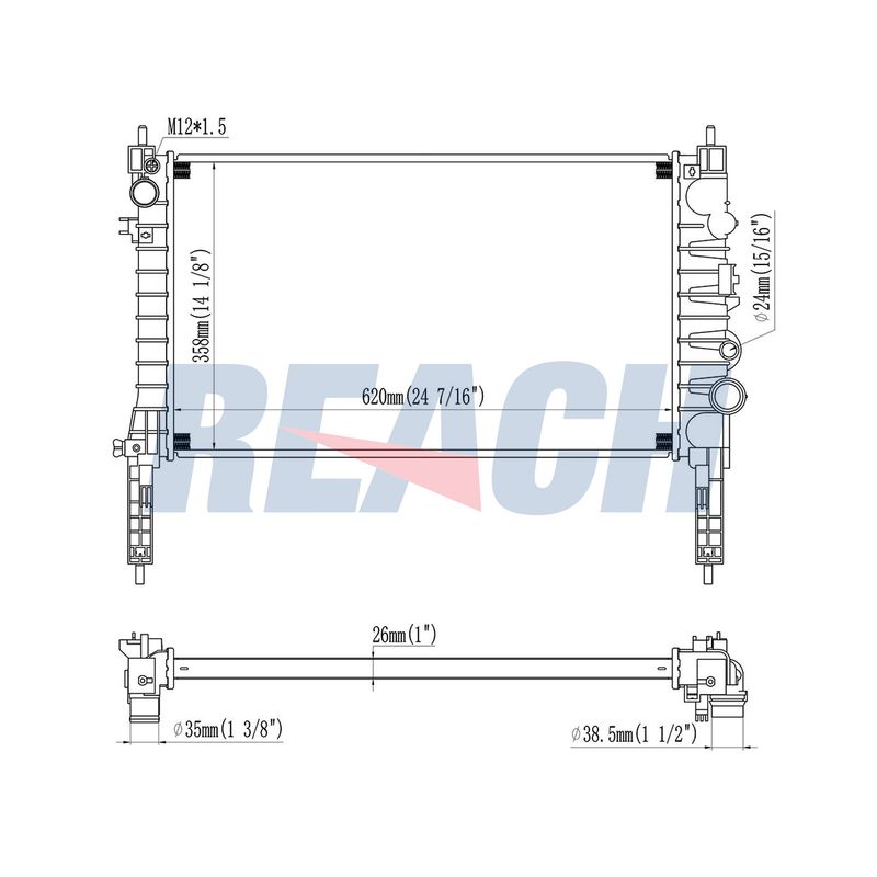 Размеры радиатора : 620 x 359 x 26 mm