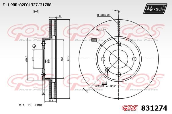Толщина тормозного диска (мм) : 21