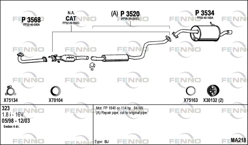 применимо для транспортных средств с года постройки : 05.1998 применимо для транспортных средств до года постройки : 09.2000 подходит для типа автомобиля : седан подходит для типа автомобиля : Хэтчбэк для двигателя № : FP Количество клапанов : 16 Версия : Liftback Версия : BJ