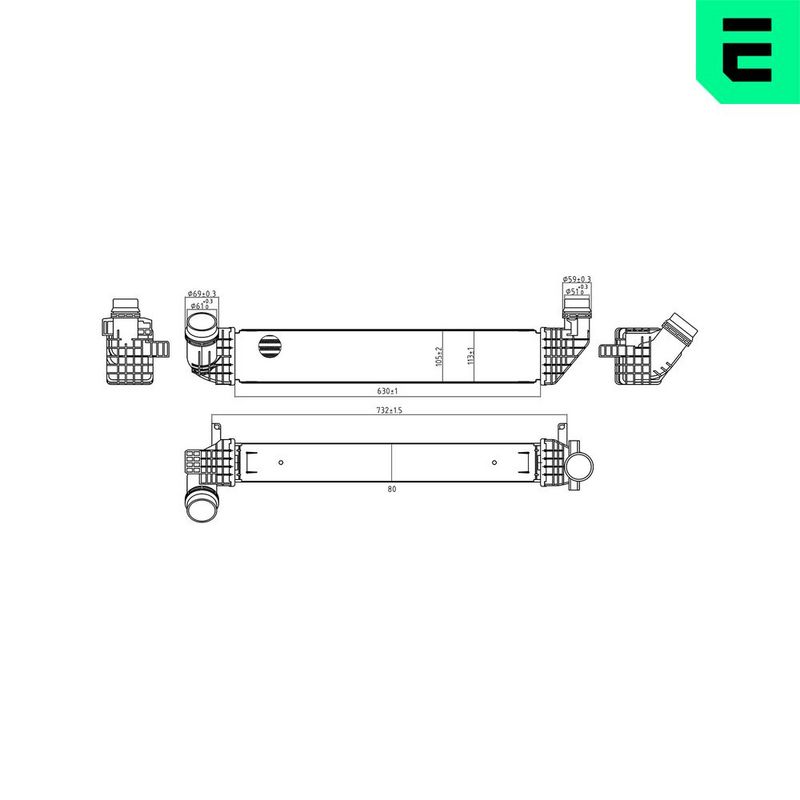 Размеры радиатора : 630 x 105 x 80 mm