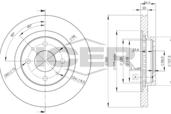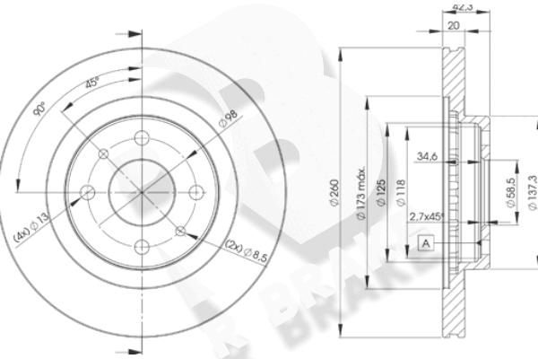 Тип тормозного диска : цельный