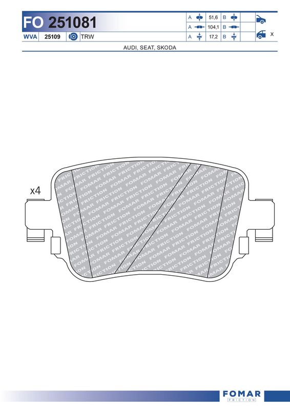 Количество тормозных колодок : 4