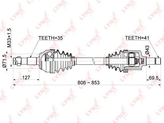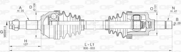 Приводной вал : без кольца ABS