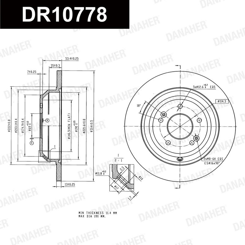 Толщина тормозного диска (мм) : 11,4