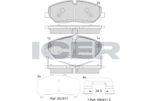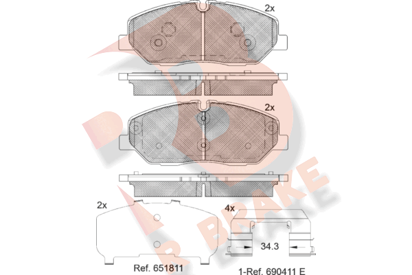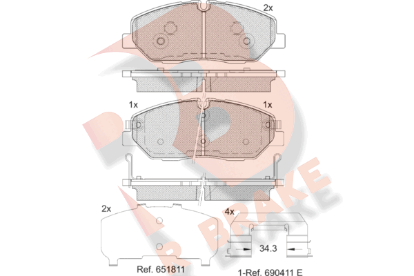 Количество тормозных колодок : 4
