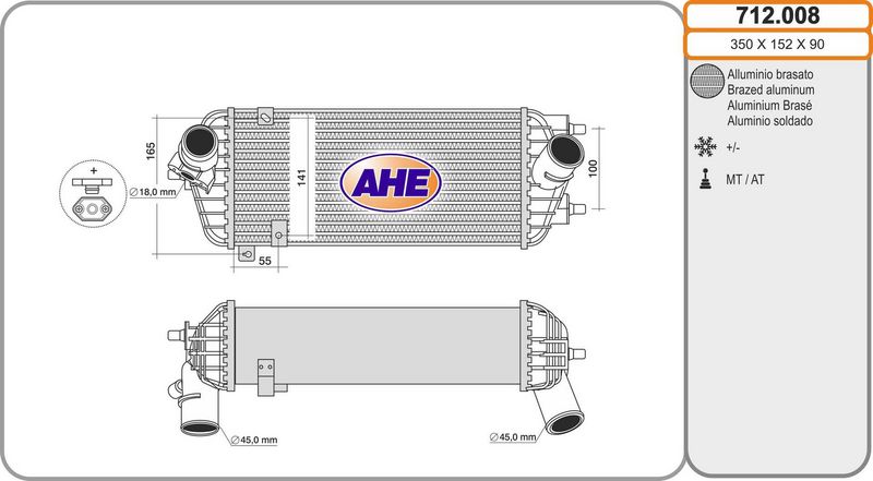 Длина сети [мм] : 350 Ширина сети [мм] : 161 Глубина сети [мм] : 85 Конструкция радиатора : Ребра охлаждения припаянные Впускной диаметр [мм] : 45 Выпускной диаметр [мм] : 45 Вес [кг] : 2,6 Длина упаковки [см] : 62 Ширина упаковки [см] : 24 Высота упаковки [см] : 19 для оригинального номера : 282712A800