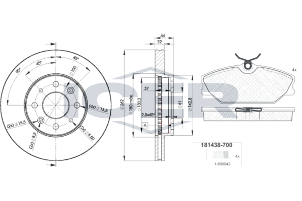Тип тормозного диска : цельный