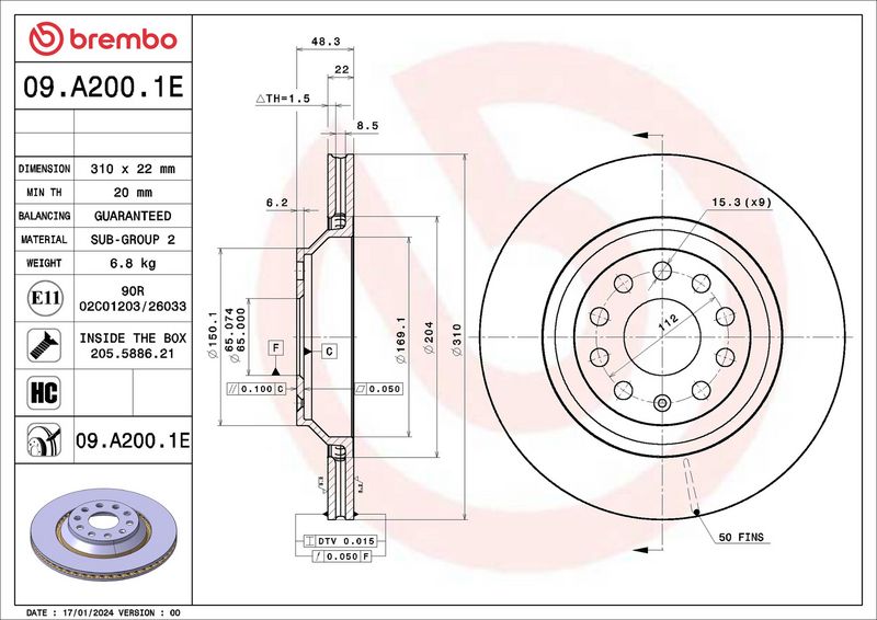 проверочное значение : ECE R90APPROVED