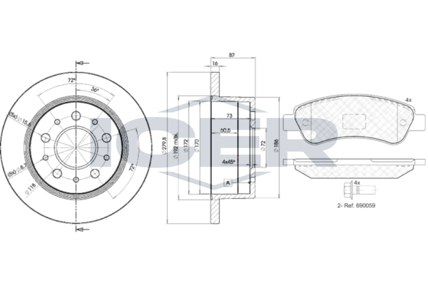 Тип тормозного диска : цельный