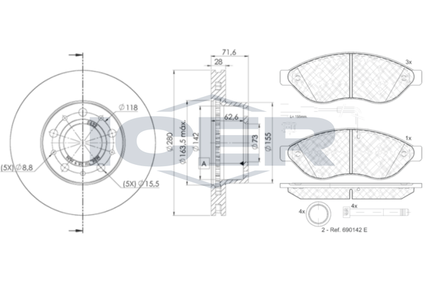 Толщина тормозного диска (мм) : 28