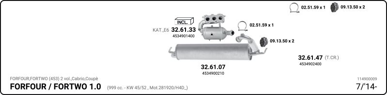 MODELS SMART FORTWO Кабриолет (453) 1.0 (453.442, 453.443) Глушитель в сборе