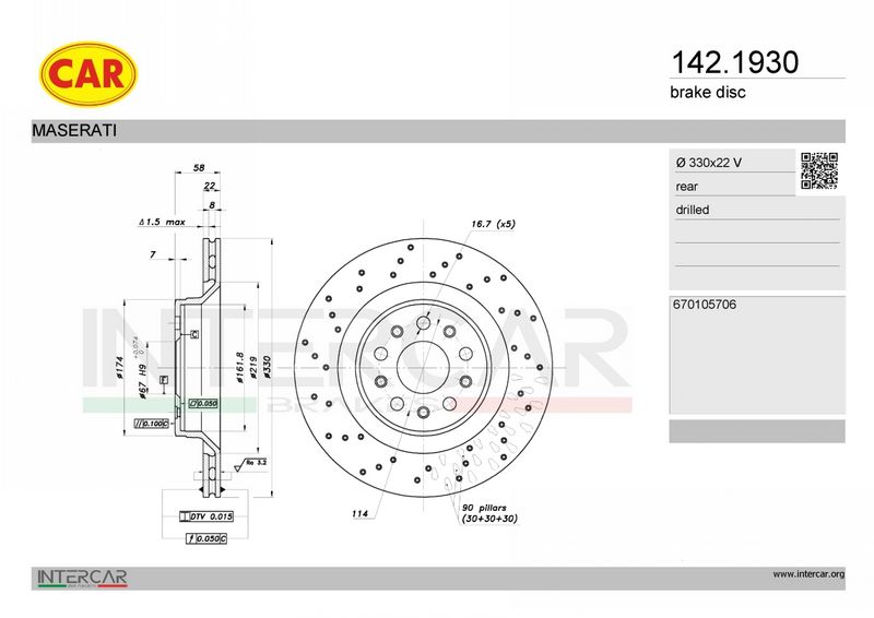 Тип тормозного диска : перфорированный
