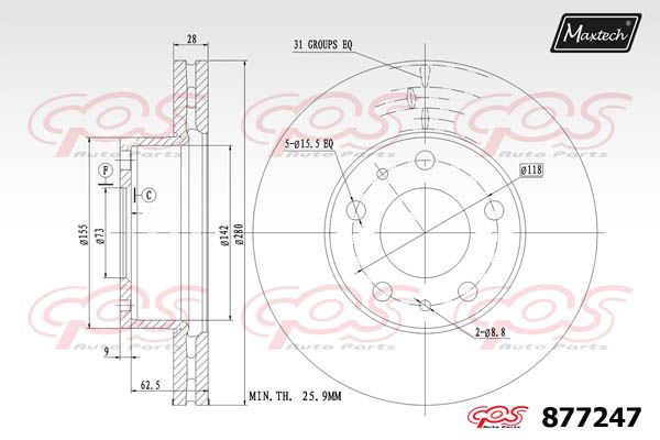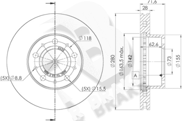 Толщина тормозного диска (мм) : 28