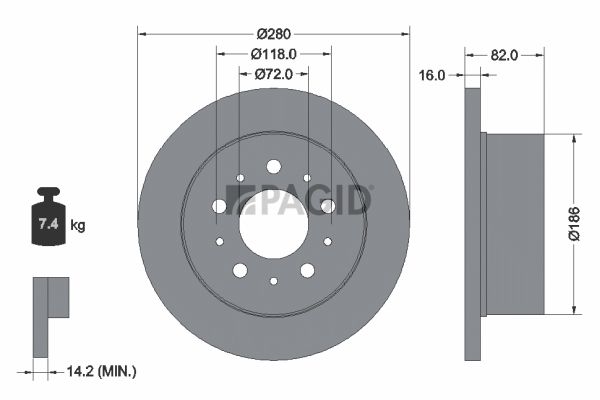 Минимальная толщина [мм] : 14,2