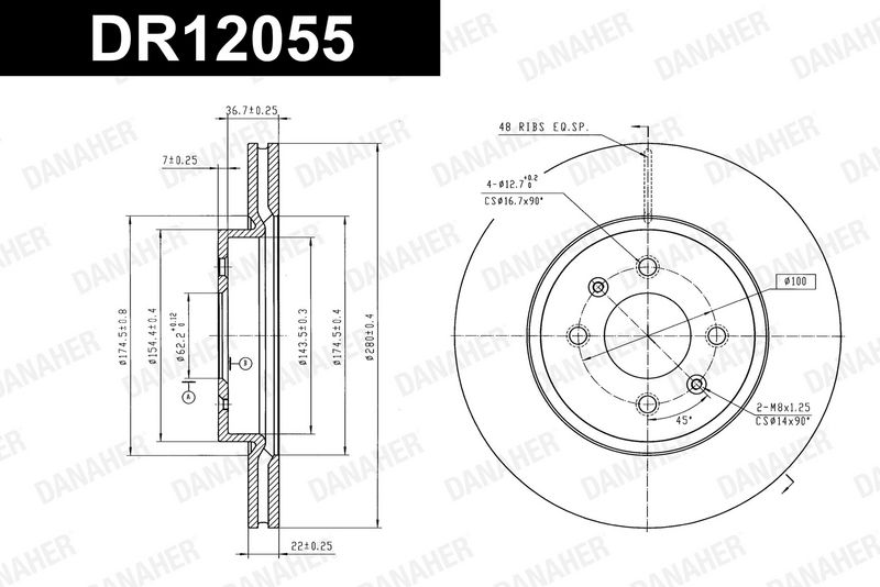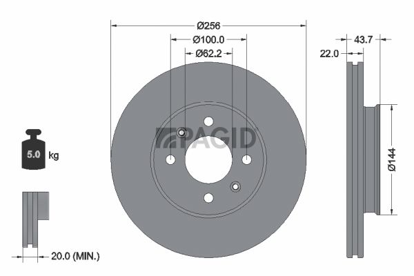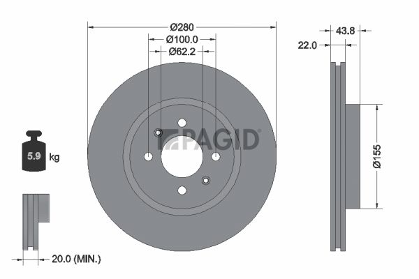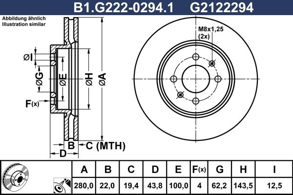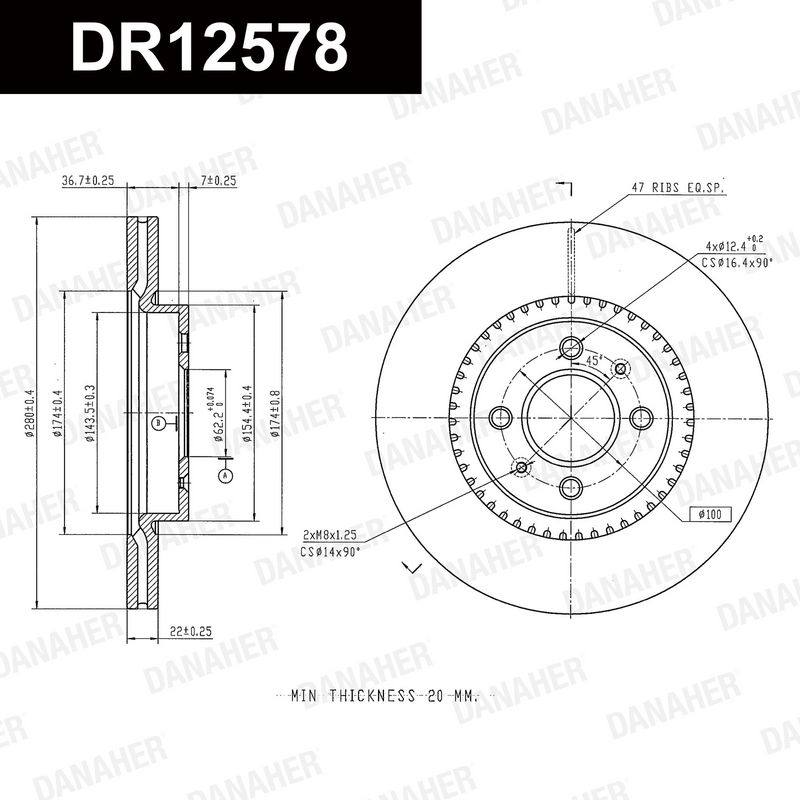 Толщина тормозного диска (мм) : 22