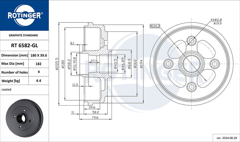 Наружный диаметр тормозного барабана [мм] : 205,5