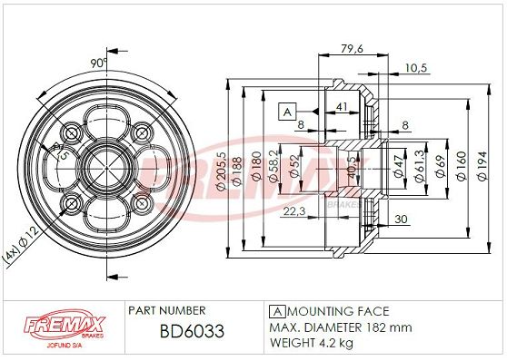 Общая высота тормозного барабана [мм] : 79,6