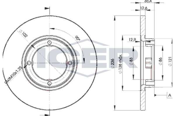 Толщина тормозного диска (мм) : 12,6