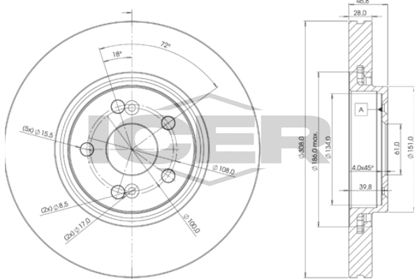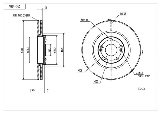 Толщина тормозного диска (мм) : 28
