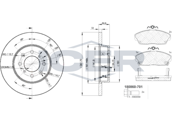 Тип тормозного диска : цельный