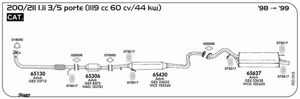 применимо для транспортных средств с года постройки : 02.1998 применимо для транспортных средств до года постройки : 11.1999 подходит для типа автомобиля : Хэтчбэк для двигателя № : 11K2F Норма выхлопных газов : Euro 2