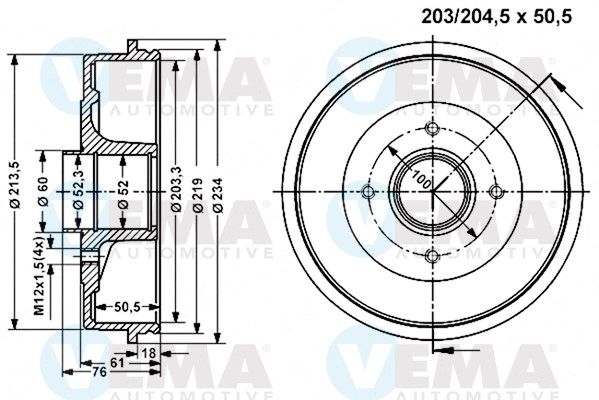 Внутренний диаметр тормозного барабана [мм] : 203,3