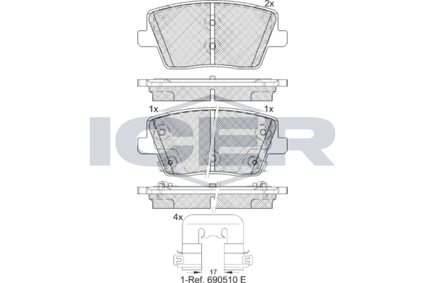 Количество тормозных колодок : 4