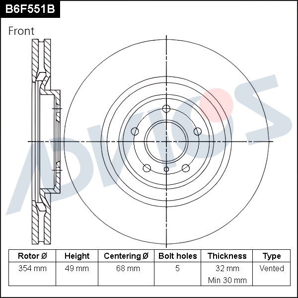 Толщина тормозного диска (мм) : 32