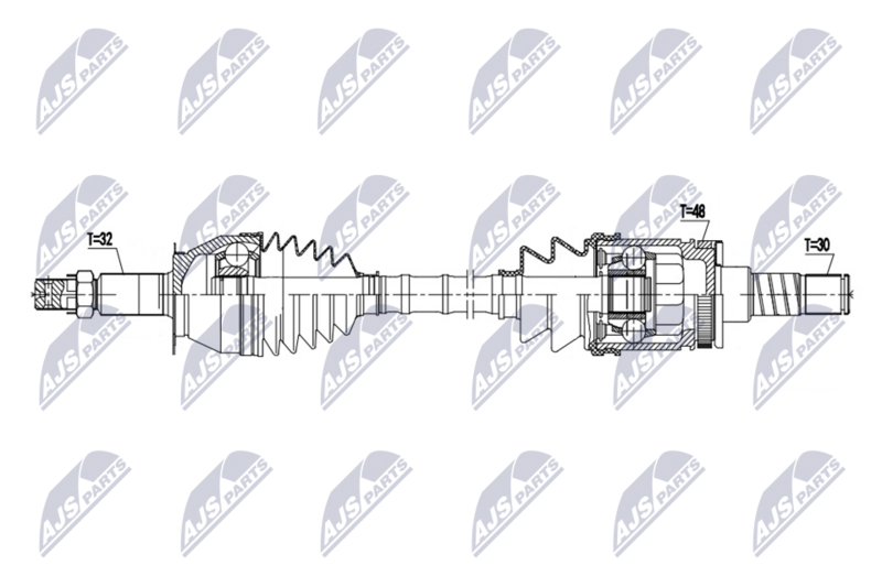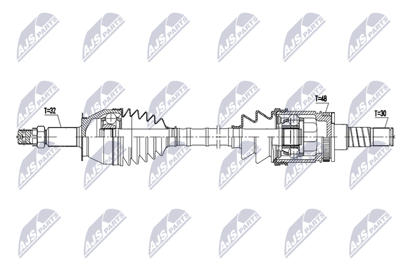 Длина [мм] : 797 Внешнее зацепление со стороны колеса : 32 Внешнее зацепление со стороны дифференциала : 30 Число зубцов кольца ABS : 48