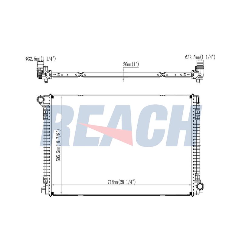 Материал ребра охлаждения : алюминий Глубина сети [мм] : 26 Длина сети [мм] : 720 Ширина сети [мм] : 502 Впускной диаметр [мм] : 32,5 Выпускной диаметр [мм] : 32,5 Конструкция радиатора : Ребра охлаждения припаянные Дополнительный артикул / Дополнительная информация : без проладки Материал бачка (радиатор) : полимерный материал