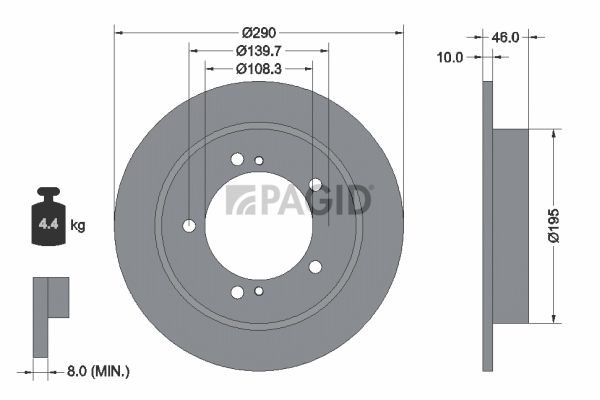 Тип тормозного диска : цельный