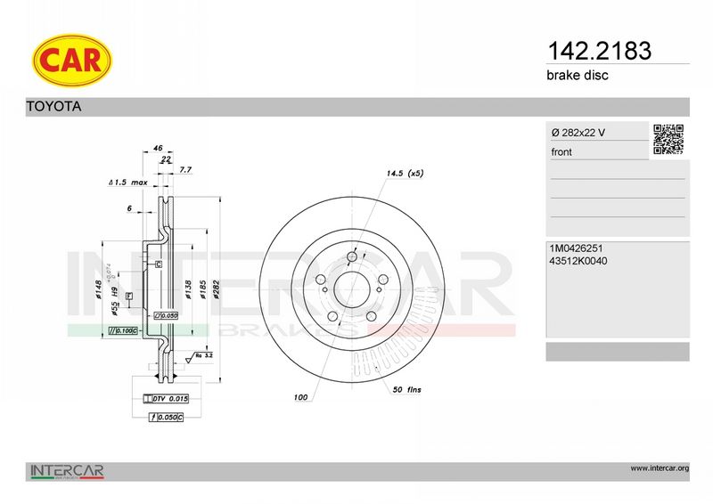 Толщина тормозного диска (мм) : 22