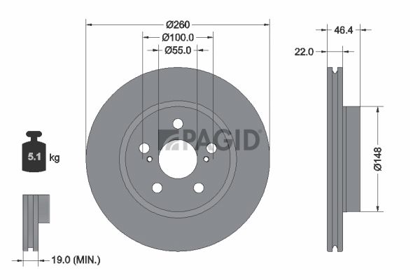 Толщина тормозного диска (мм) : 22