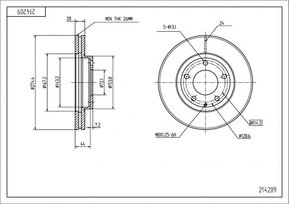 Толщина тормозного диска (мм) : 28,1