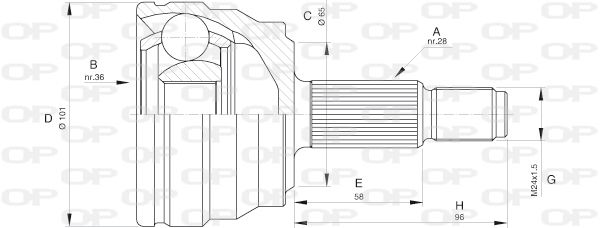 Внутренне зубчатое соединение со стороны колеса : 28