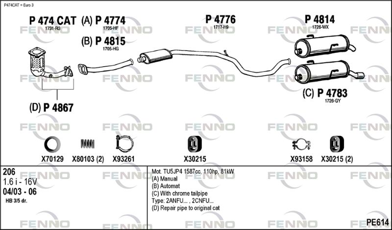 применимо для транспортных средств с года постройки : 03.2001 применимо для транспортных средств до года постройки : 12.2005 подходит для типа автомобиля : Хэтчбэк для двигателя № : TU5JP4 Количество клапанов : 16 Норма выхлопных газов : до норматива Евро-3