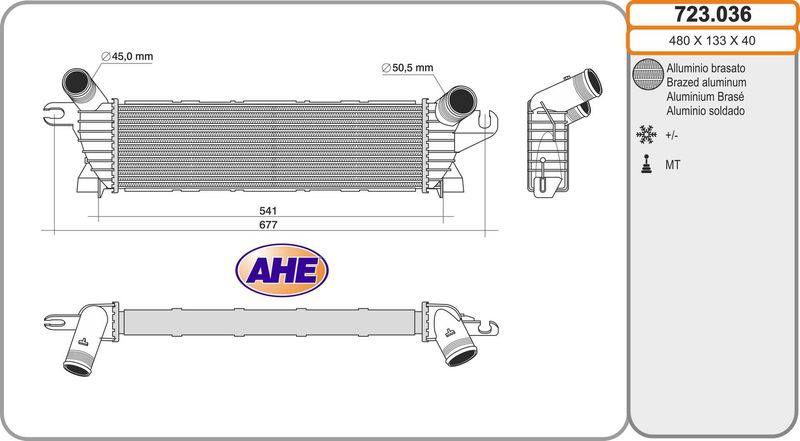 Вес [кг] : 2,95 Материал : алюминий Тип системы охлаждения : с воздушным охлаждением Впускной диаметр [мм] : 50 Выпускной диаметр [мм] : 50 Длина сети [мм] : 480 Ширина сети [мм] : 133 Глубина сети [мм] : 40