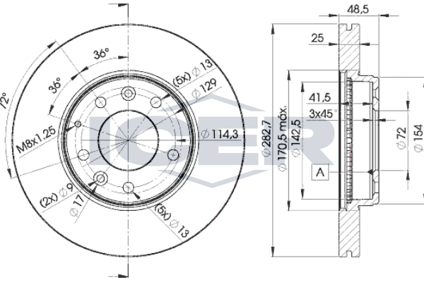 Наружный диаметр [мм] : 282,5