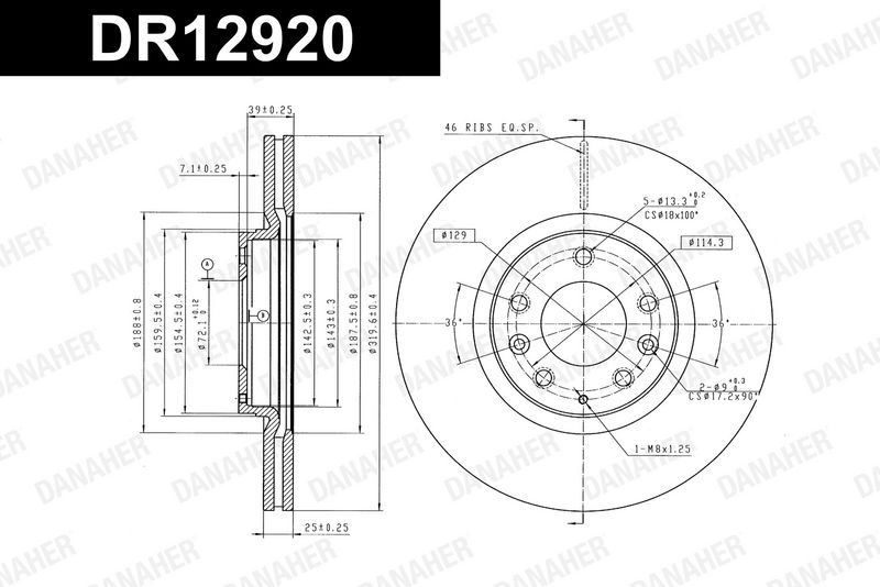 Толщина тормозного диска (мм) : 25