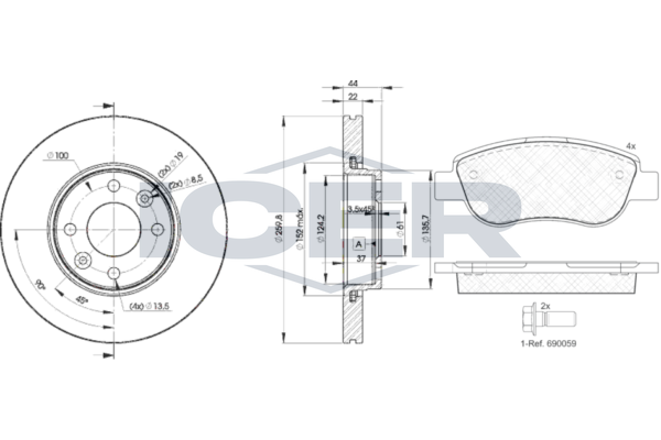 Тип тормозного диска : цельный