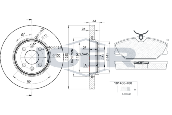 Сторона установки : передний мост Тормозная установка : LUCAS Тип тормозного диска : вентилируемый Толщина тормозного диска (мм) : 24 Наружный диаметр [мм] : 280 Количество отверстий : 4 Ø фаски [мм] : 100 Датчик износа : без датчика износа Из многих частей : Из многих частей Количественная единица : комплект