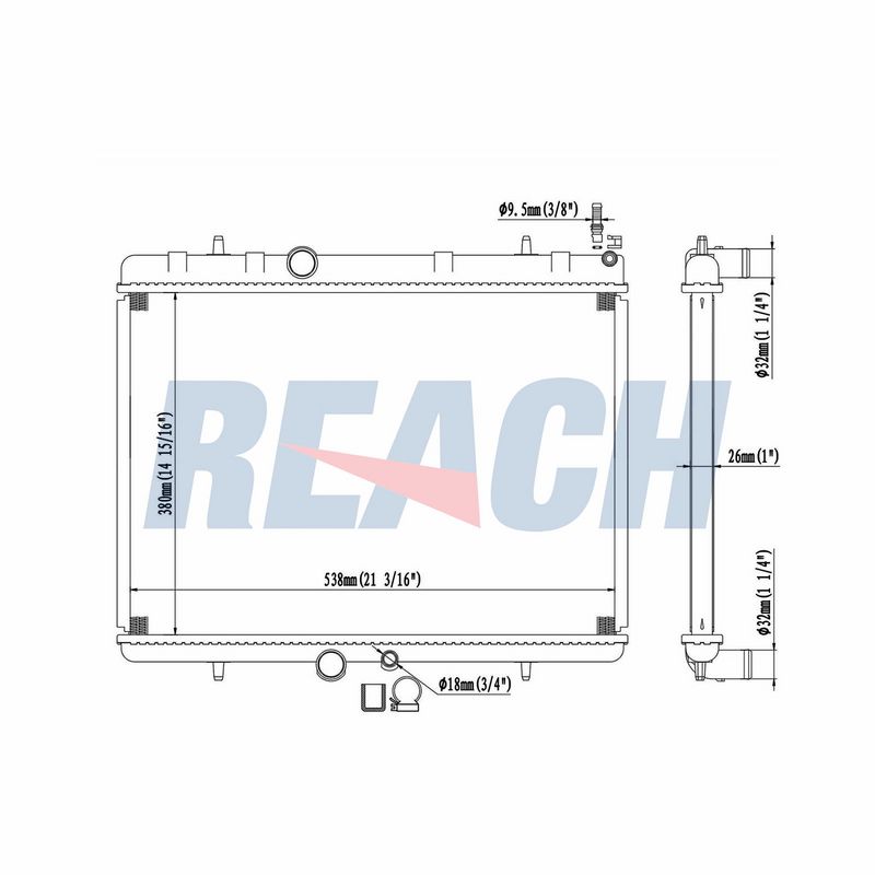 Размеры радиатора : 538x380x26