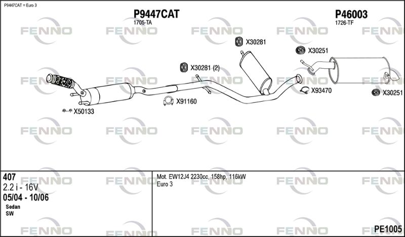 применимо для транспортных средств с года постройки : 02.2004 применимо для транспортных средств до года постройки : 12.2008 подходит для типа автомобиля : универсал для двигателя № : EW12J4 Норма выхлопных газов : до Евро 4