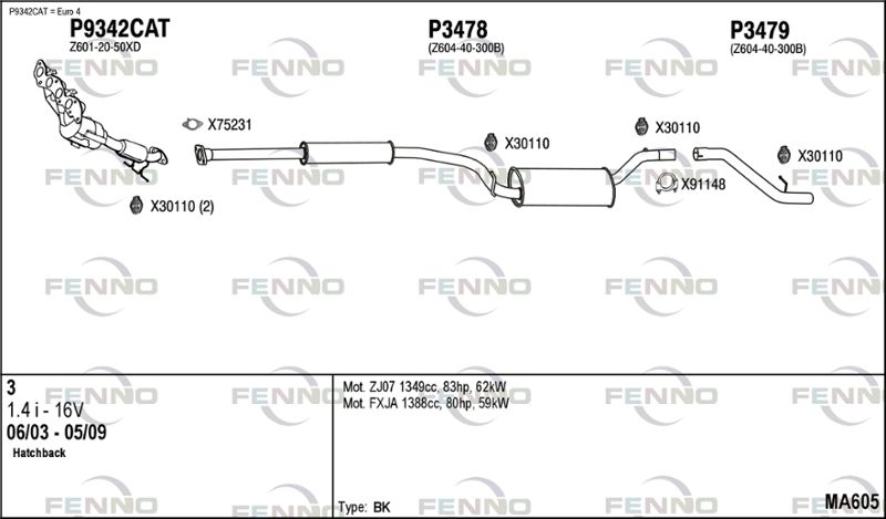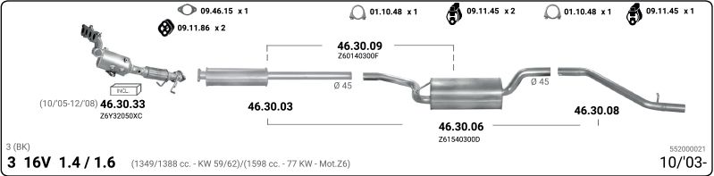 применимо для транспортных средств с года постройки : 10.2003 применимо для транспортных средств до года постройки : 03.2005 подходит для типа автомобиля : Хэтчбэк для двигателя № : ZJ07 для двигателя № : ZJ30 для двигателя № : ZJ32 Количество клапанов : 16 Норма выхлопных газов : до Евро 4
