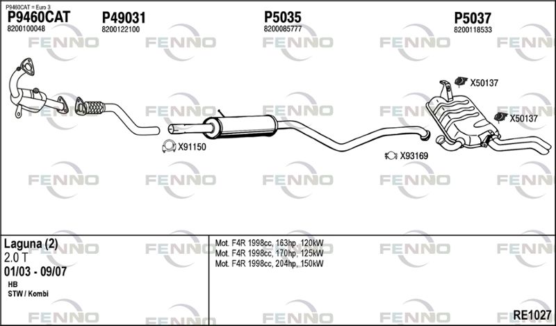 MODELS RENAULT LAGUNA II (BG0/1_) 2.0 16V (BG03, BG0Z, BG0T, BG1Y) Глушитель в сборе