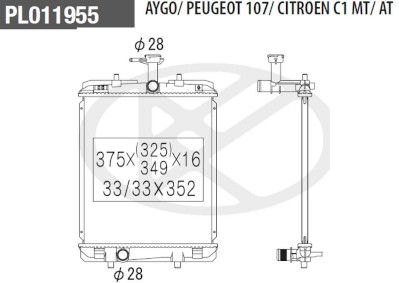 Размеры радиатора : 375x328x16