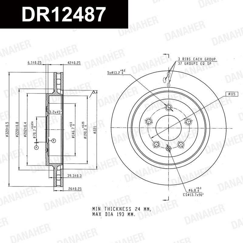 Толщина тормозного диска (мм) : 24