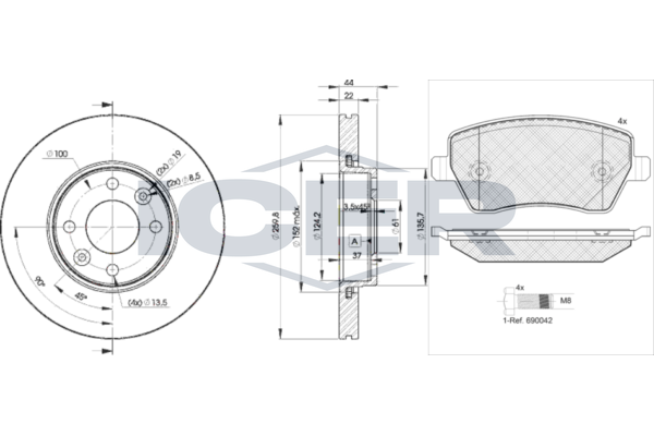 Толщина тормозного диска (мм) : 8